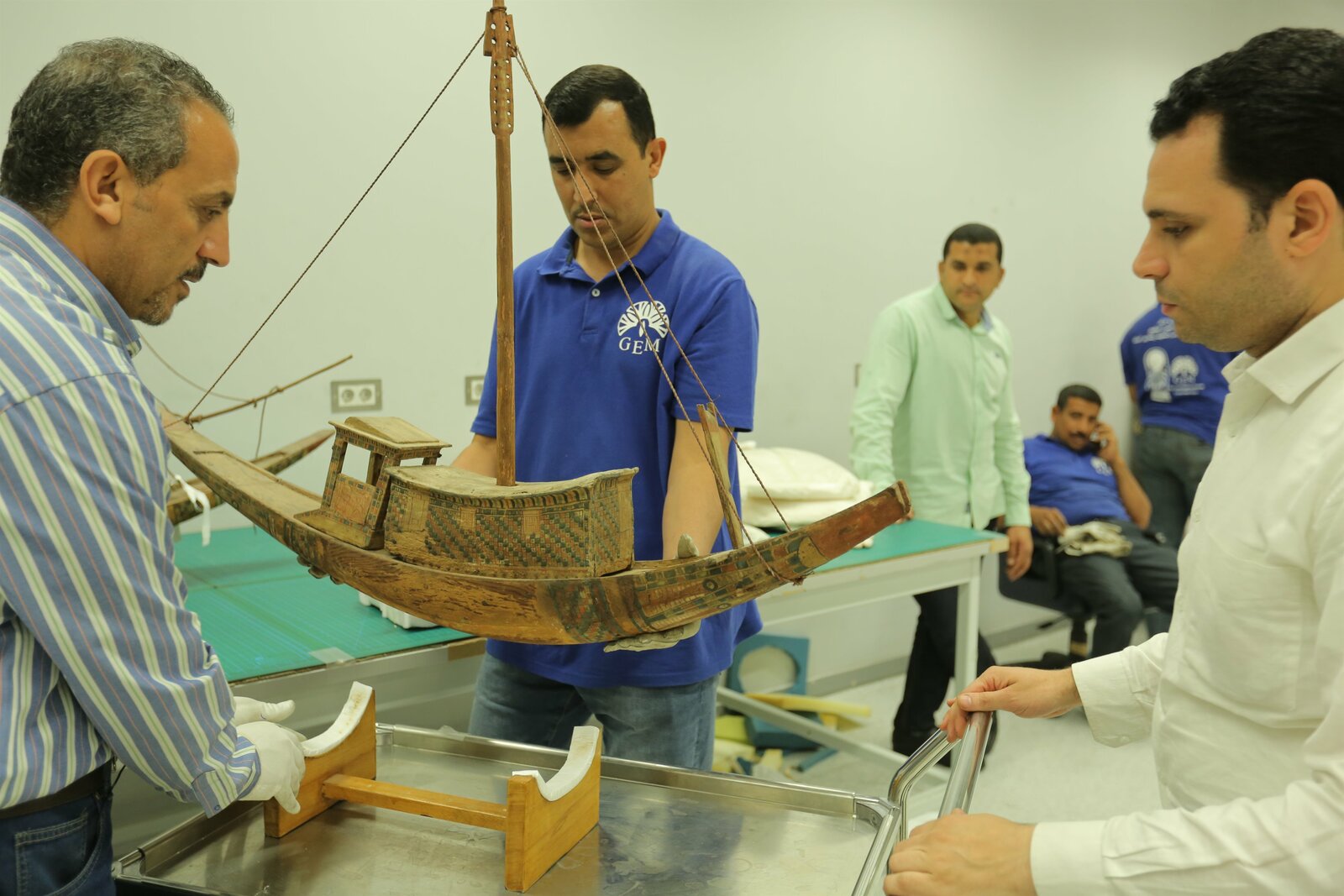 Tutanchamuns SchätzeEgypt - Alejandro Jimenez Serrano looking into Shemai's tomb at the model boats. (Windfall Films)Bild: © / Windfall Films