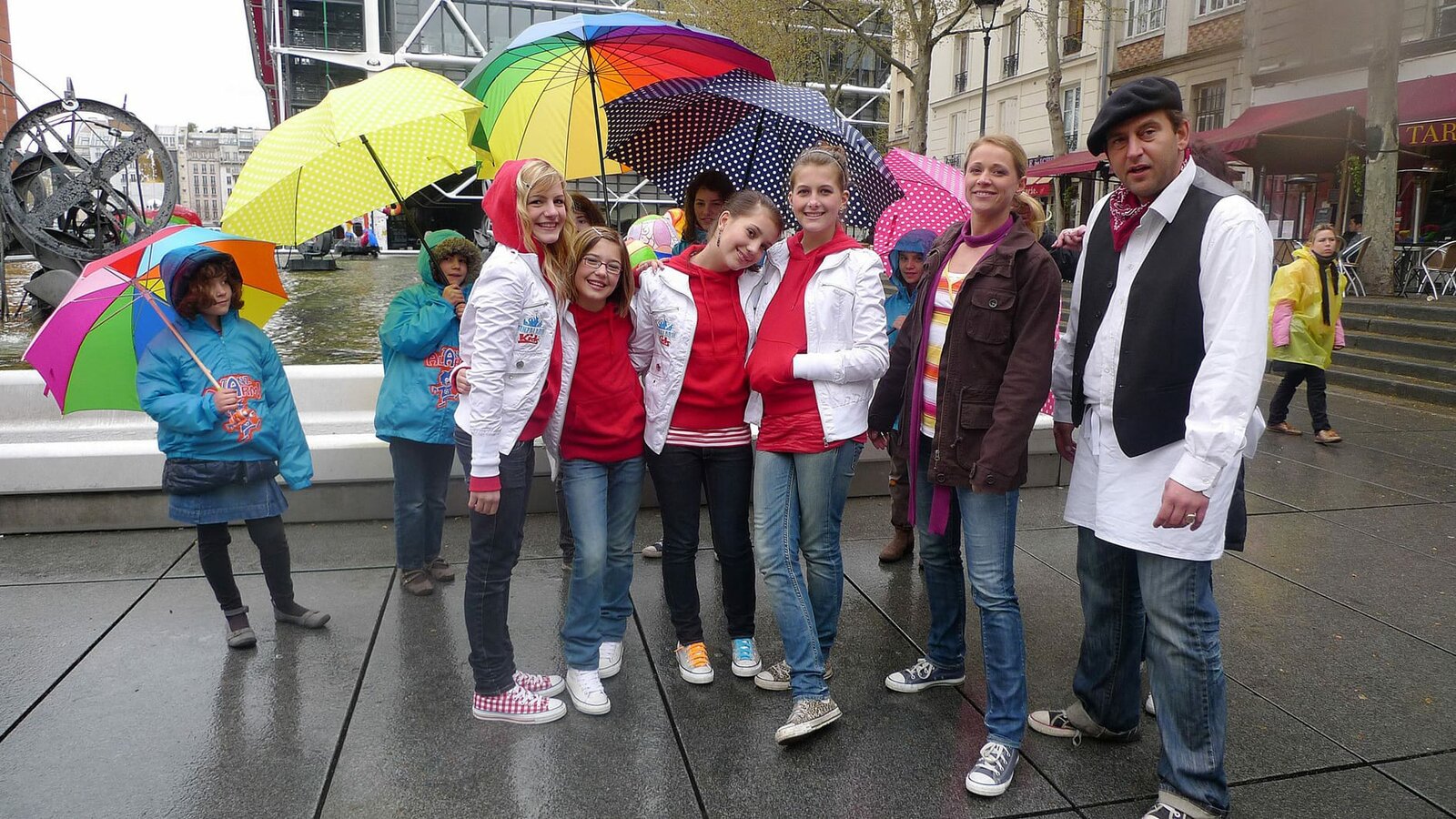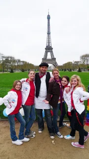 FrankreichSinga und Tom (Bildmitte) gemeinsam mit den Tanzalarm Kids vor dem Eifelturm in der Stadt der Liebe, Paris.Bild: © KI.KA/ZDF/MingaMedia