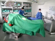 Der Tapir in der TierklinikDer TanzTapir flieht und versteckt sich in einem OP-Saal.Bild: © KiKA/MingaMedia/Holger Kast