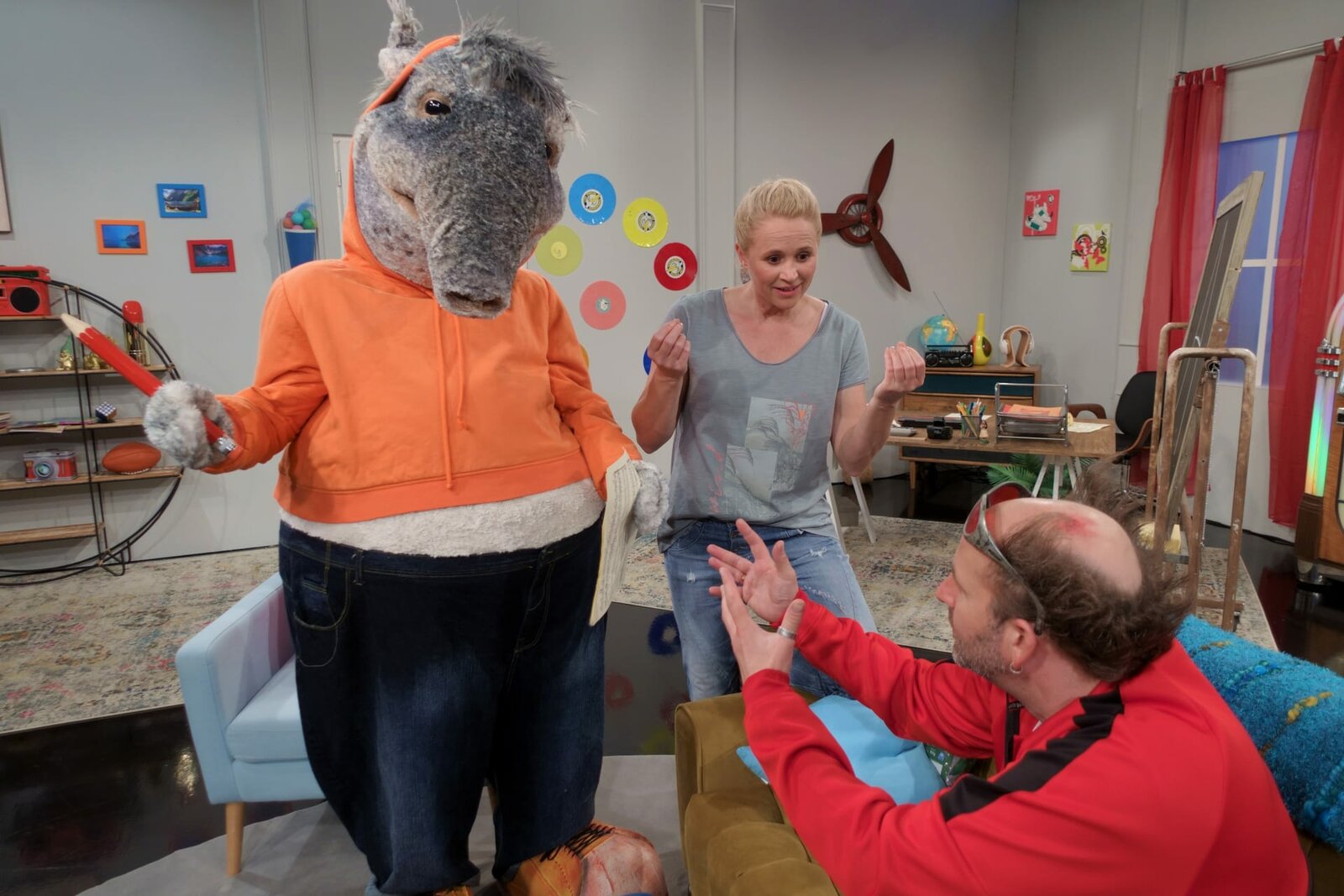 Der Tapir steht ModelDie Modells stehen still f??r TanzTapirs Zeichnung.Bild: © KiKA/MingaMedia/Holger Kast