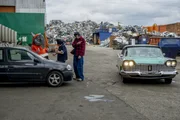 Auf dem SchrottplatzDas dachte sich auch der TanzTapir und wollte mitmachen. Er schlug einfach auf ein anderes Auto auf dem Schrottplatz ein. Nur leider war das kein Schrott, sondern "Elvis", der völlig intakte Wagen der beiden Männer und ihr ganzer Stolz. Die beiden sind jetzt stinksauer.ÂBild: © KiKA/MingaMedia/Holger Kast