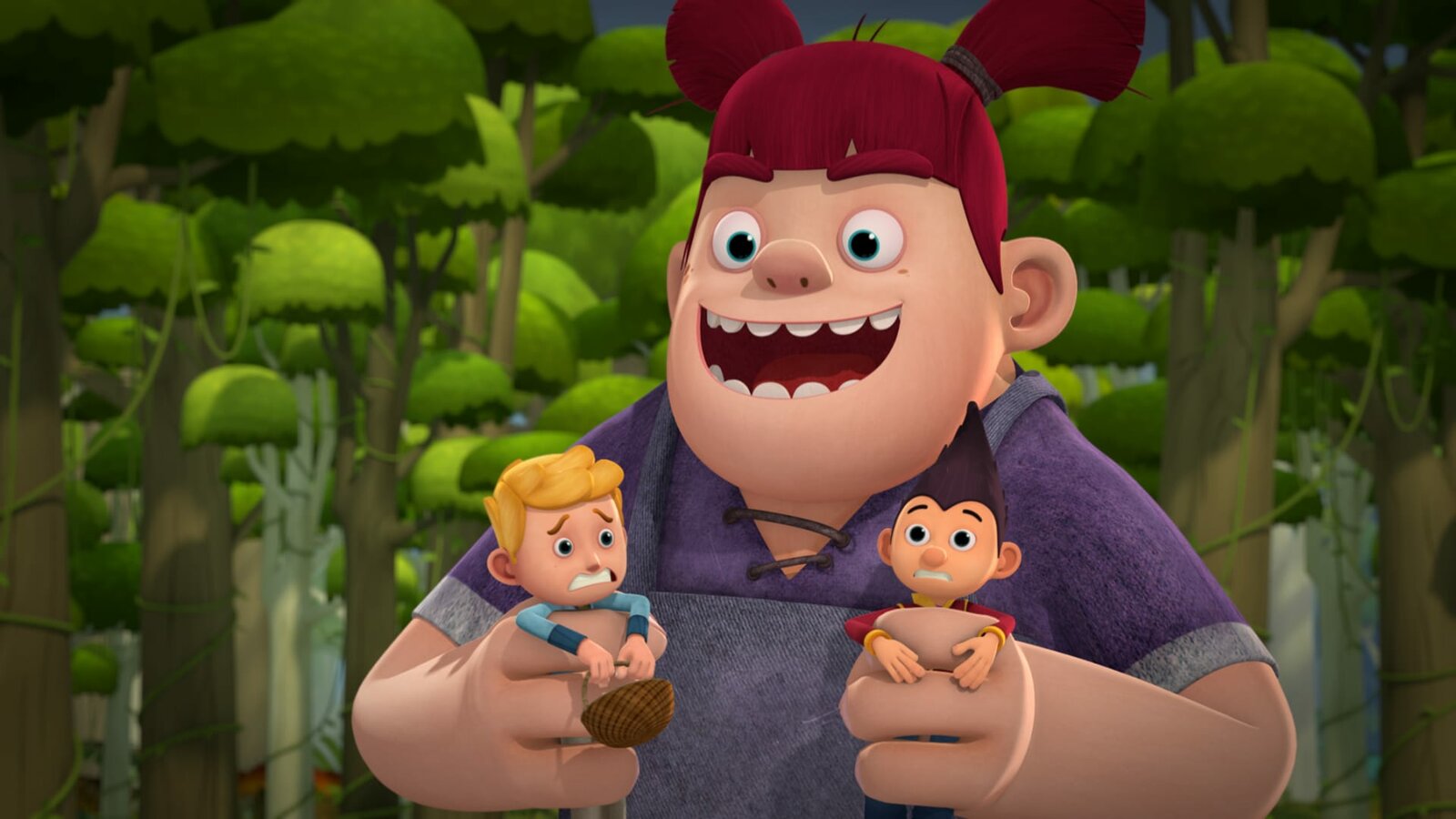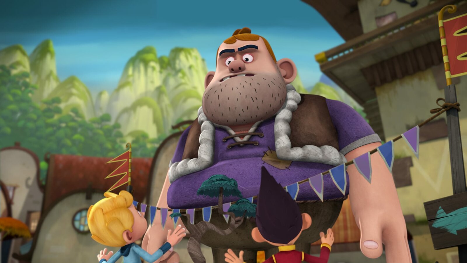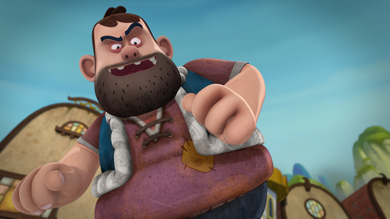 Kicherbeeren & MampfhungerOnkel Mampfred zerstört das ganze Dorf.Bild: © KiKA/Flying Bark Productions Pty Ltd.