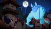 Tashi & das SpukhausAh Chu muss mit einem Trichter vor der Nase dem Geruch des Pfefferbeeren-Müfflés folgen.Bild: © KiKA/Flying Bark Productions Pty Ltd.