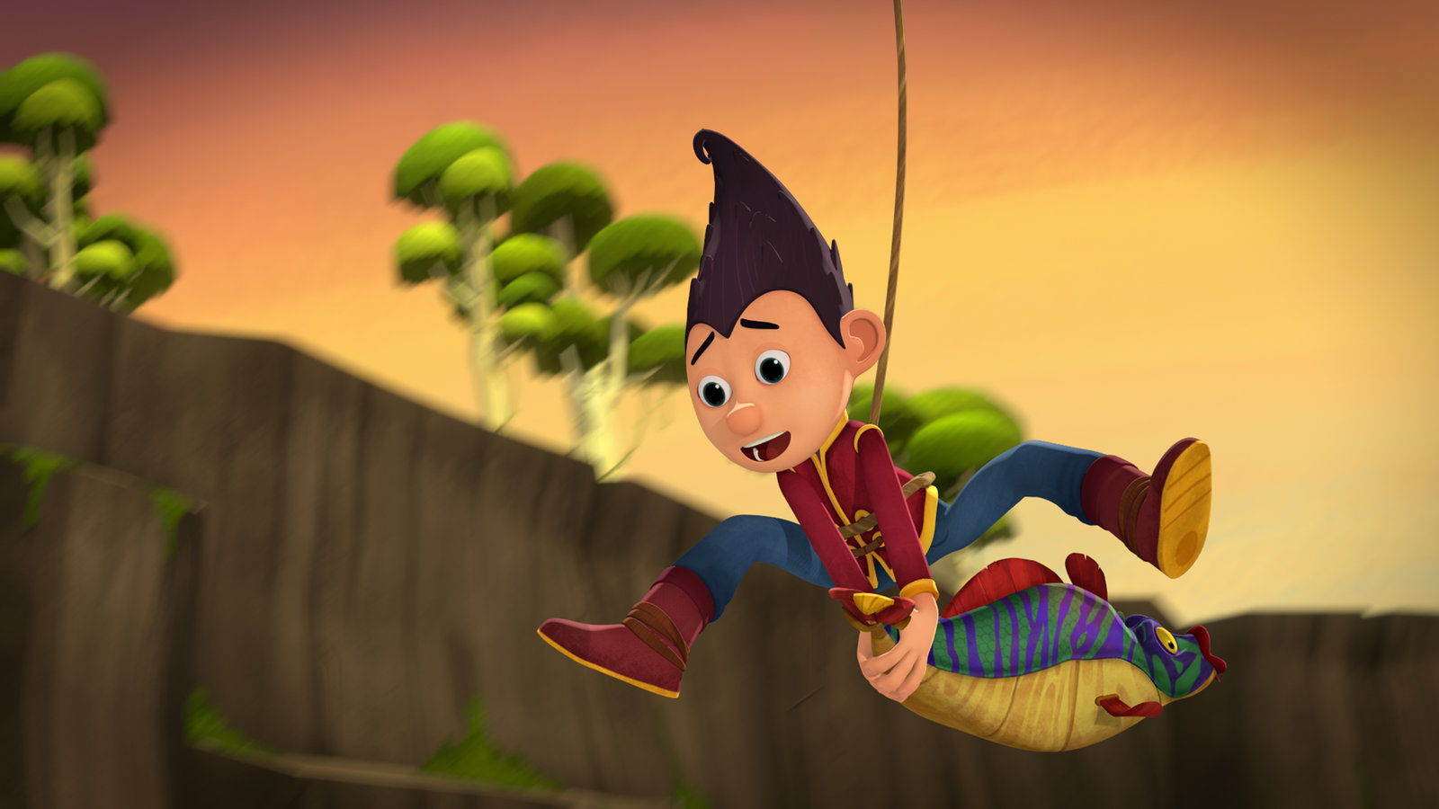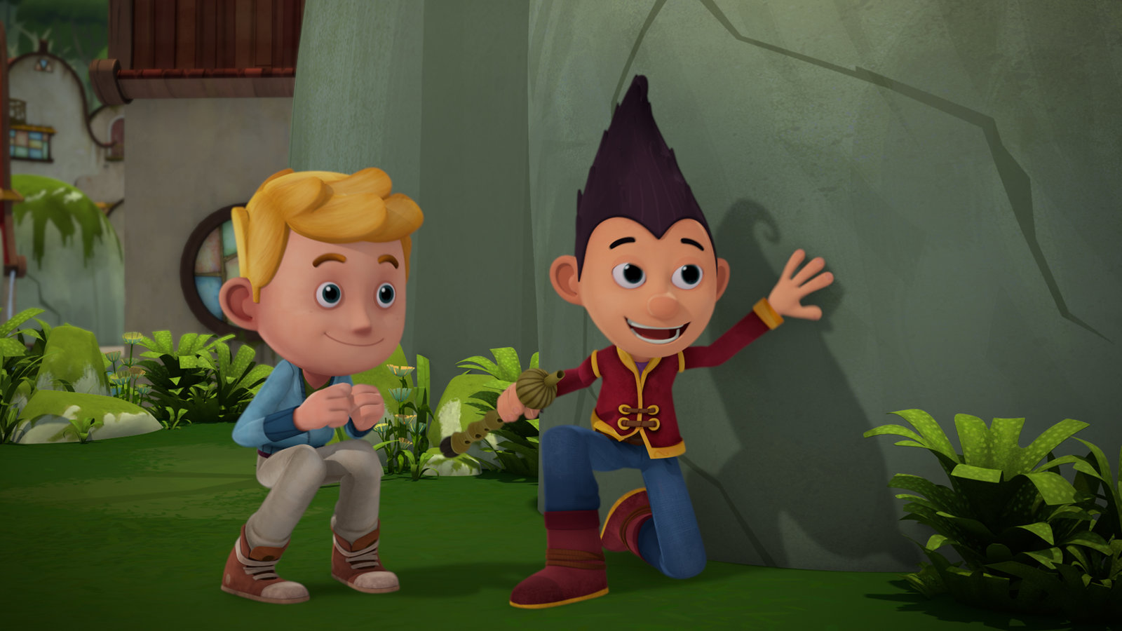 Tashi & JackJack kann dem Drachen entkommen.Bild: © KiKA/Flying Bark Productions Pty Ltd.