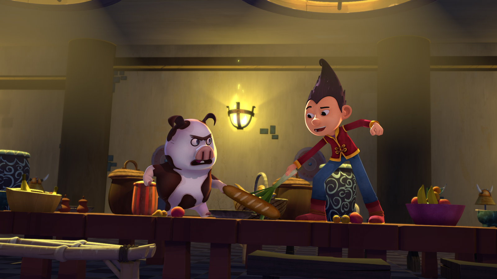 Grunzarotti & BrüllhildGrunzarotti und Tashi geben für Großkhan ein Duett.Bild: © KiKA/Flying Bark Productions Pty Ltd.