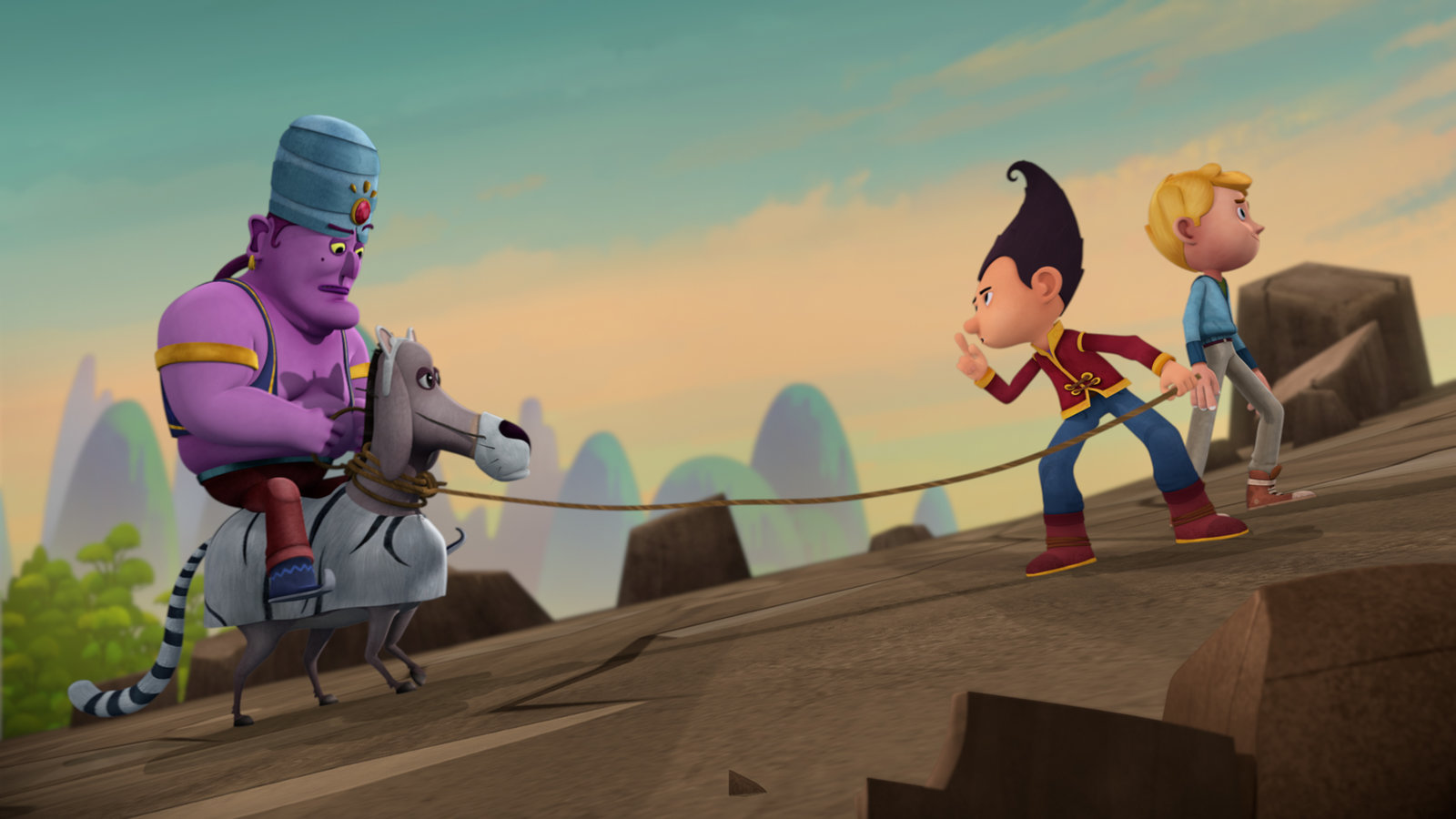 Mamilein & Sir HammerhornGroßkhan wurde festgenommen.Bild: © KiKA/Flying Bark Productions Pty Ltd.