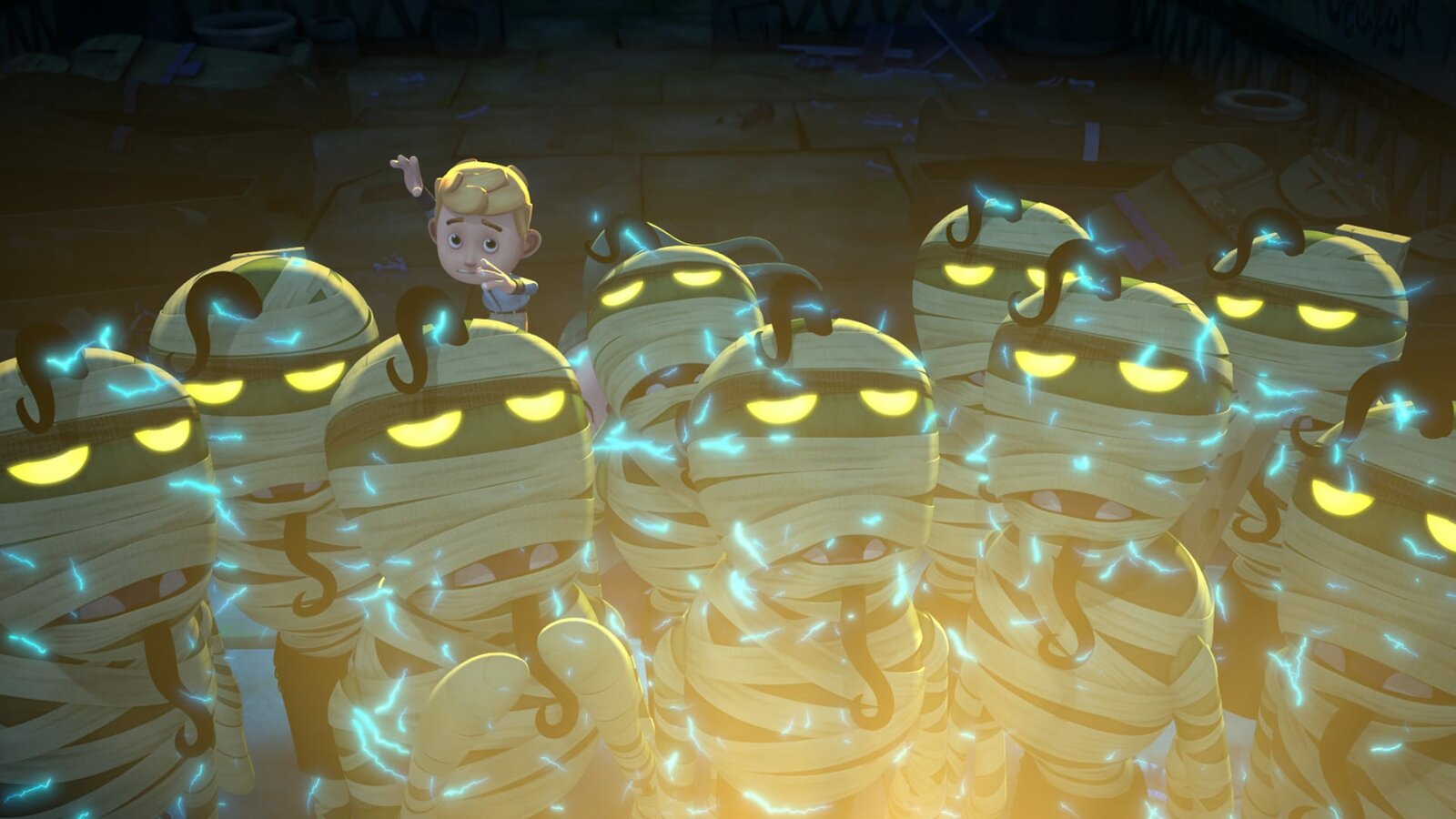 Videospiele & PiratensteuerDie elektrisierten Mombies folgen dem Quadranten.Bild: © KiKA/Flying Bark Productions Pty Ltd.