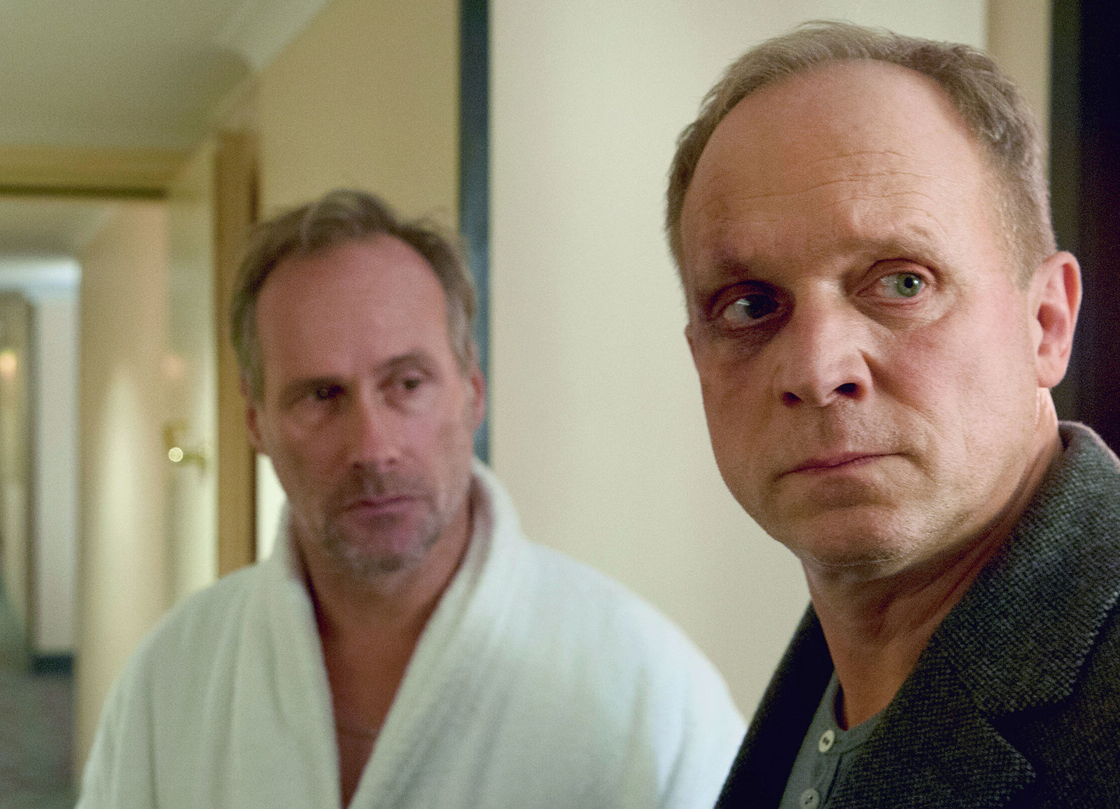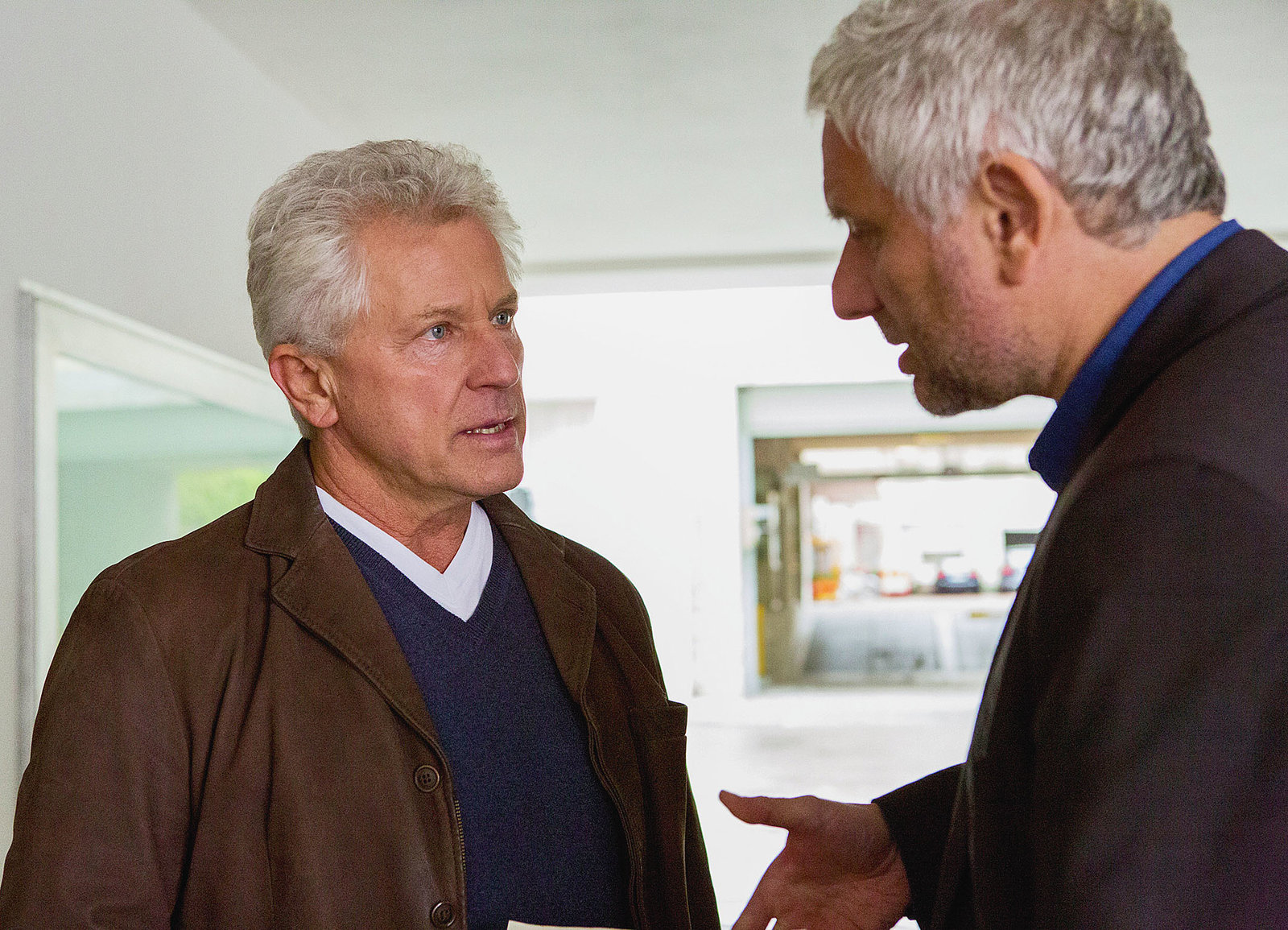 Am Ende des FlursAuseinandersetzung zwischen Kollegen: Miroslav Nemec als Kriminalhauptkommissar Ivo Batic, Udo Wachtveitl als Kriminalhauptkommissar Franz LeitmayrBild: © SRF/BR/Denise Vernillo