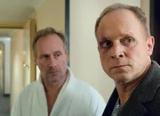 Einmal wirklich sterbenFrisch geduscht: Miroslav Nemec als Kommissar Batic, Simon Schwarz als Bernard Helmbrecht, Udo Wachtveitl als Kommissar LeitmayrBild: © SRF/BR/Bernd Schuller