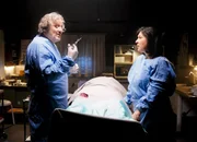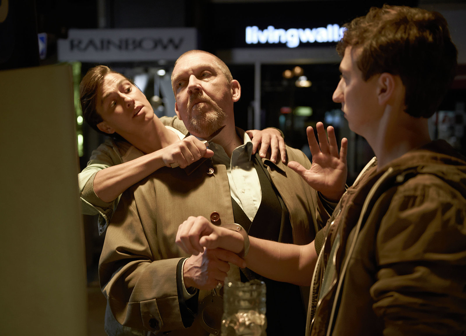 Die Geschichte vom bösen FriederichBesprechung: Ursina Lardi als Helene Kaufmann, Nicholas Ofczarek als Alexander Nolte, Roeland Wiesnekker als Henning RiefenstahlBild: © SRF/HR/Bettina Müller