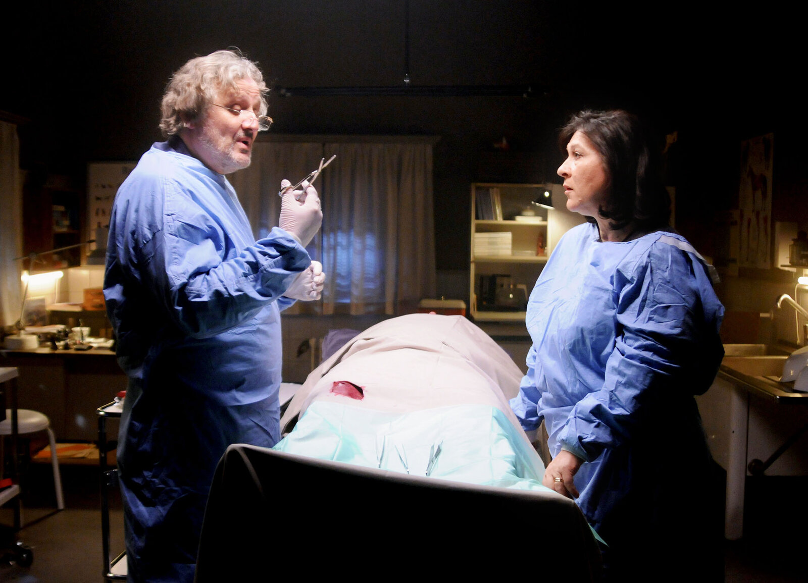 Der Himmel ist ein Platz auf ErdenBeobachten die Spurenermittlung bei der Arbeit: Dagmar Manzel als Paula Ringelhahn (vornel.), Matthias Egersdörfer als Michael Schatz (vorne r.)Bild: © SRF/BR/Olaf Tiedje