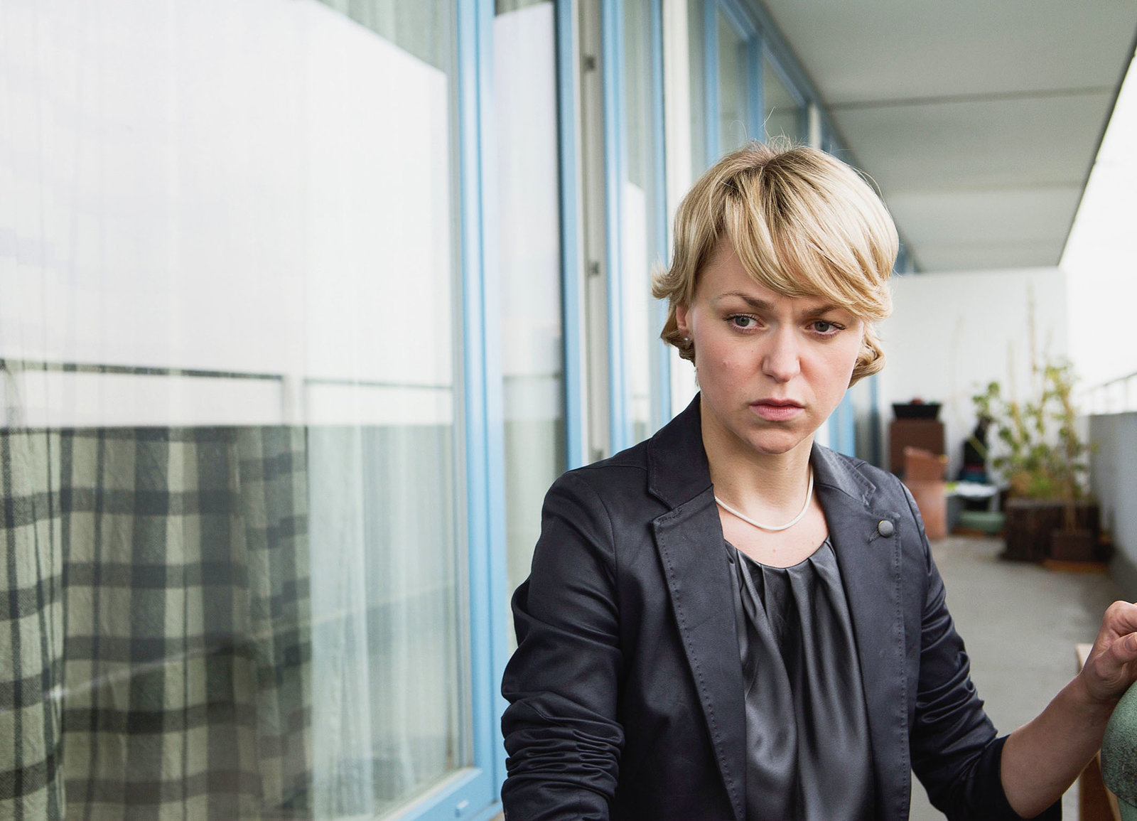 Am Ende des FlursEntdeckt jemanden auf dem Balkon: Lisa Wagner als Profilerin Christine LerchBild: © SRF/BR/Denise Vernillo