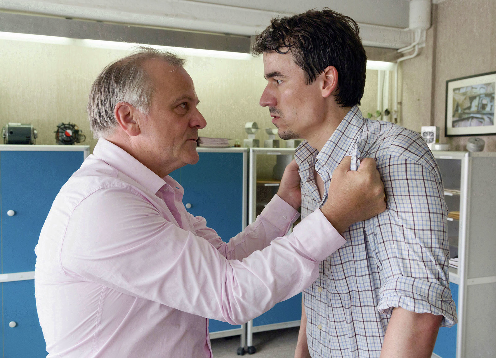 BlutschuldHandfeste Auseinandersetzung: Bernhard Schütz als Harald Kosen, Alexander Khuon als Frank BachmannBild: © SRF/MDR/Steffen Junghans