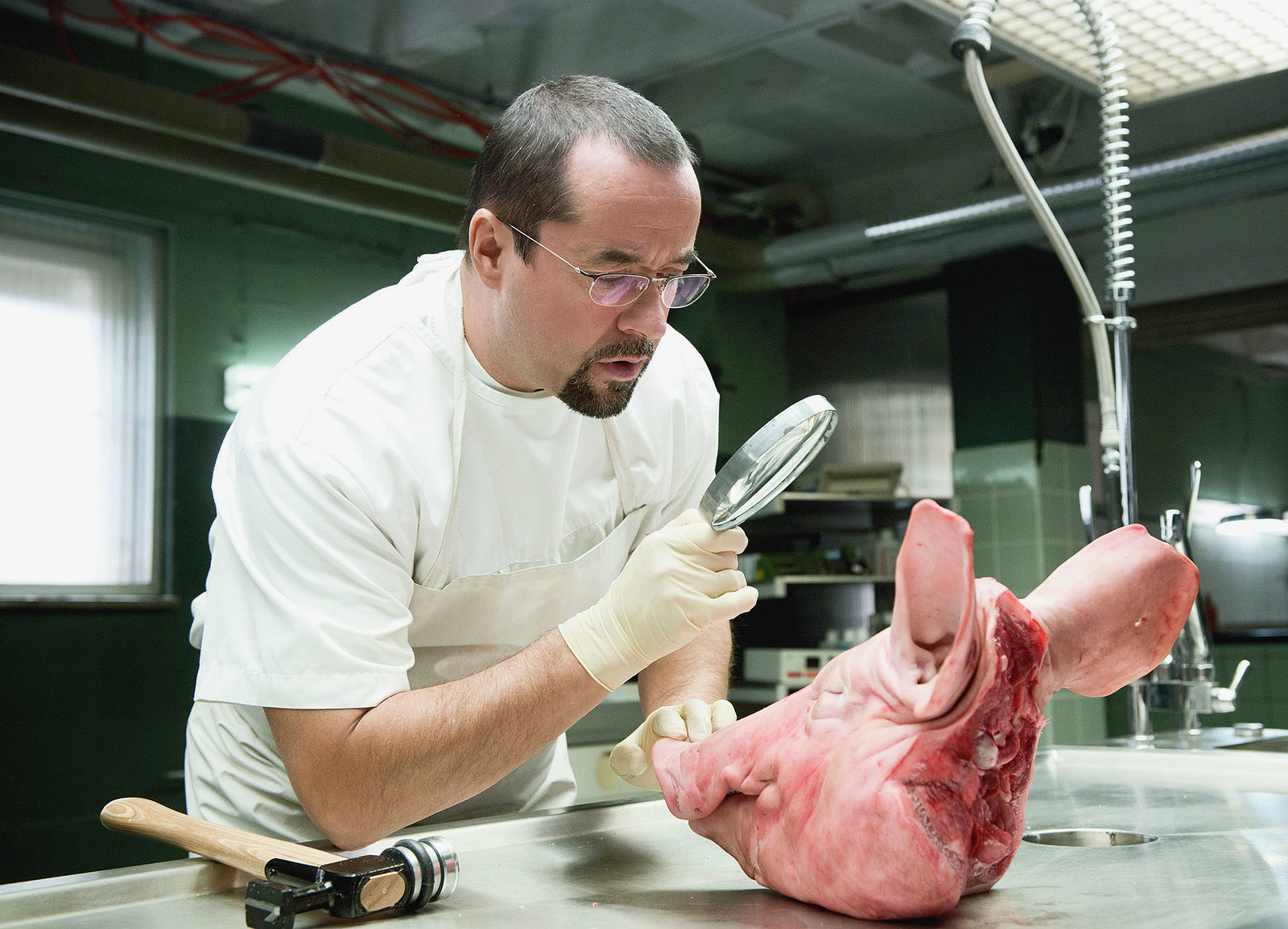 Der HammerUntersuchung am Schwein: Jan Josef Liefers als Professor Karl-Friedrich BoerneBild: © SRF/WDR/Martin Menke