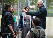 Borowski und die Kinder von GaardenBefragt die Gang: Axel Milberg als Kommissar Borowski (r.)Bild: © SRF/NDR/Christine Schroeder