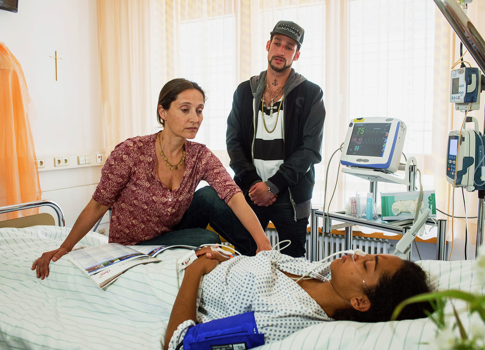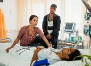 Du gehörst mirSorgen sich gemeinsam: Sandra Nedeleff als Birte Rainders (sitzend), Matthias Weidenhöfer als Yago TorresBild: © SRF/SWR/Alexander Kluge