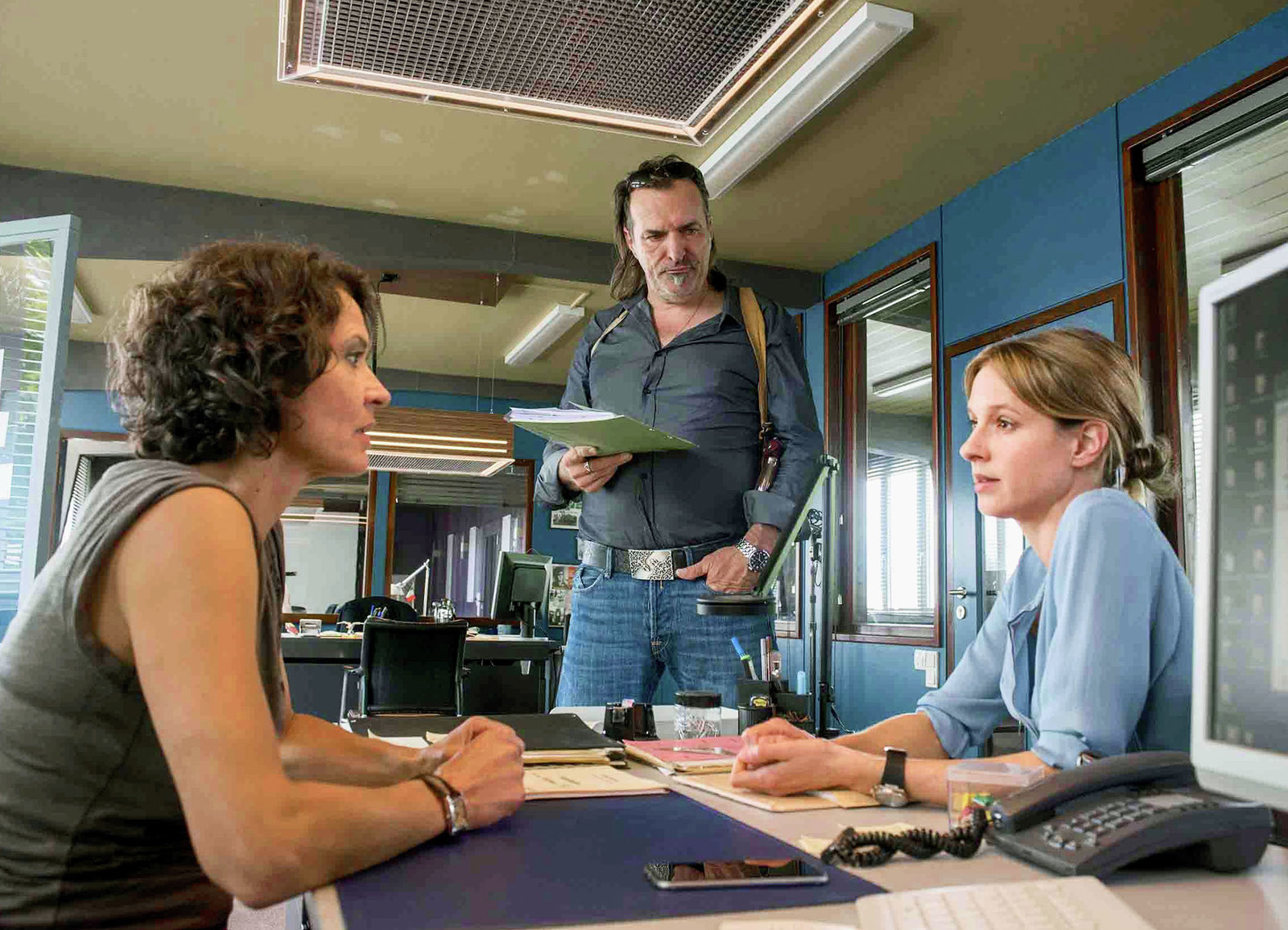 Du gehörst mirGereizte Stimmung im Team: Ulrike Folkerts als Lena Odenthal, Andreas Hoppe als Mario Kopper, Lisa Bitter als Johanna SternBild: © SRF/SWR/Alexander Kluge