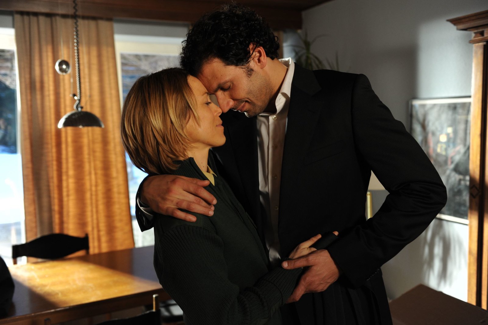 Der Tote vom Straßenrandhr-fernsehen TATORT: DER TOTE VOM STRASSENRAND, Kriminalfilm, Deutschland 2007, Regie: Rolf Schübel, am Samstag (19.04.14) um 20:15 Uhr. Schwacher Augenblick: Gerichtsmedizinerin Dr. Rhea Singh (Lale Yavas) vertraut sich Kommissar Kappl (Maximilian Brückner) an.Bild: © HR/SR/Manuela Meyer