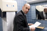 SchmugglerDer Schweizer Investmentbanker Urs Röttli (Urs Jucker) holt auf dem Besucherklo der Zollstation eine Liste ab, mit der er keinesfalls gesehen werden möchte.Bild: © SWR/Peter Hollenbach
