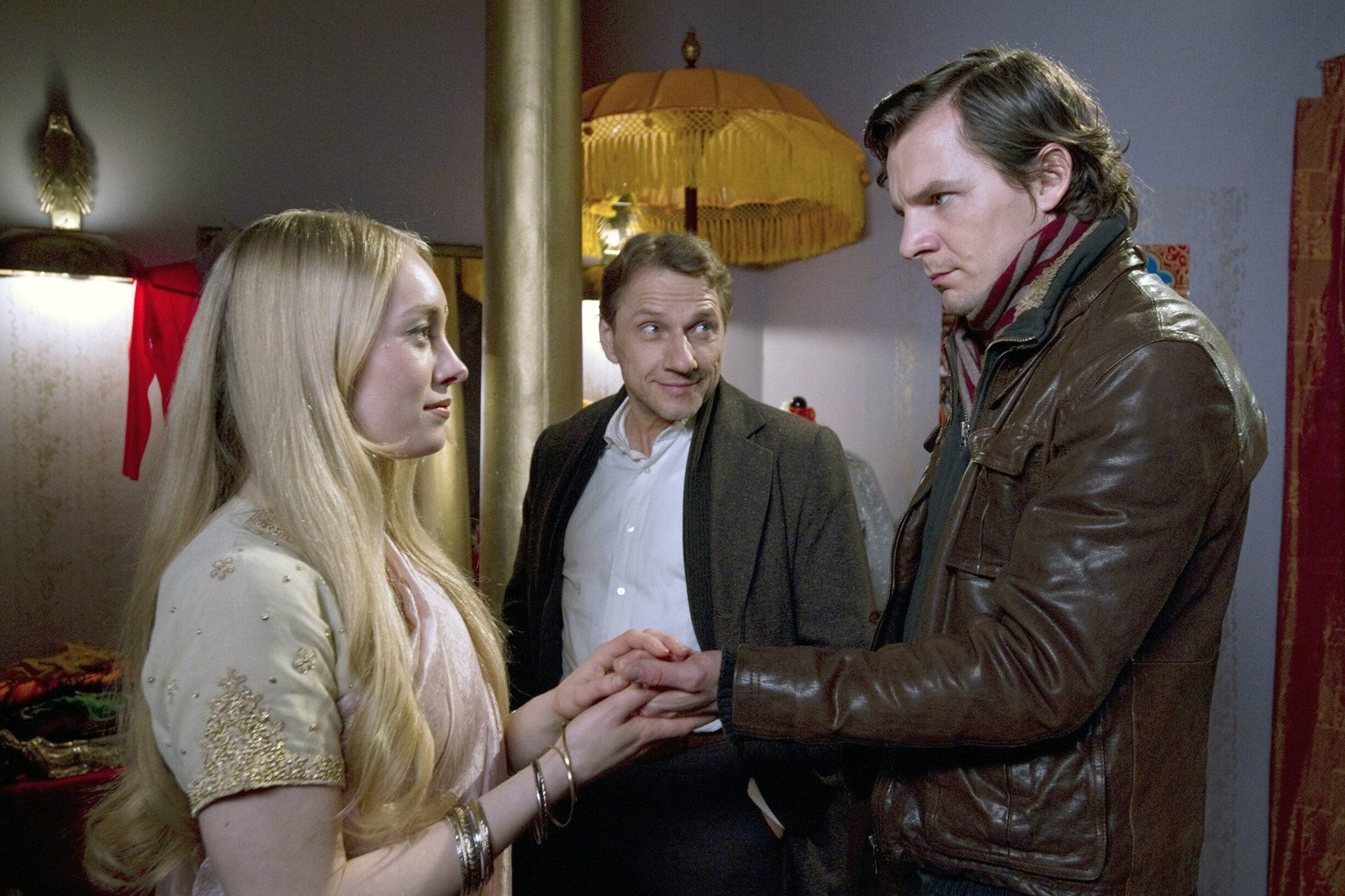 Der Tote vom Straßenrandhr-fernsehen TATORT: DER TOTE VOM STRASSENRAND, Kriminalfilm, Deutschland 2007, Regie: Rolf Schübel, am Samstag (19.04.14) um 20:15 Uhr. Peinliche Begegnung: Gerichtsmedizinerin Dr. Rhea Singh (Lale Yavas) und Kommissar Franz Kappl (Maximilian Brückner) bekommen es mit dem zwielichtigen Rechtsanwalt Woltermann (Wanja Mues, rechts) zu tun.Bild: © HR/SR/Manuela Meyer