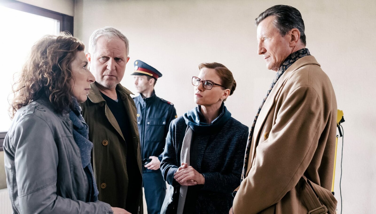 Die Kunst des KriegesDas Ermittlerduo Bibi Fellner (Adele Neuhauser, li.) und ihr Kollege Moritz Eisner (Harald Krassnitzer) sprechen mit Daniela Vopelka (Kristina Sprenger) und Ernst Rauter (Hubert Kramar, re.).Bild: © ARD/ORF/Superfilm/Klaus Pichler