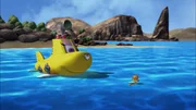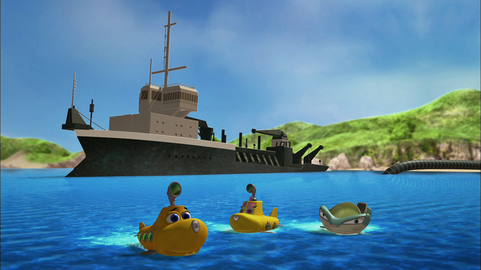 Bobsie, der PiratDie U-Boote Timmy und Bess sind besorgt: Otter Bobsie hat ein Fass mit Gift gefunden und glaubt, es sei ein Piratenschatz.Bild: © KiKA/Mike Young Productions