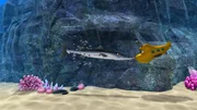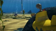 Skid, der AlleskönnerBess beobachtet, wie zwei Taucher wertvolle Steinplatten der Straße von Binimi stehlen, um sie zu verkaufen.Bild: © KiKA/Mike Young Productions