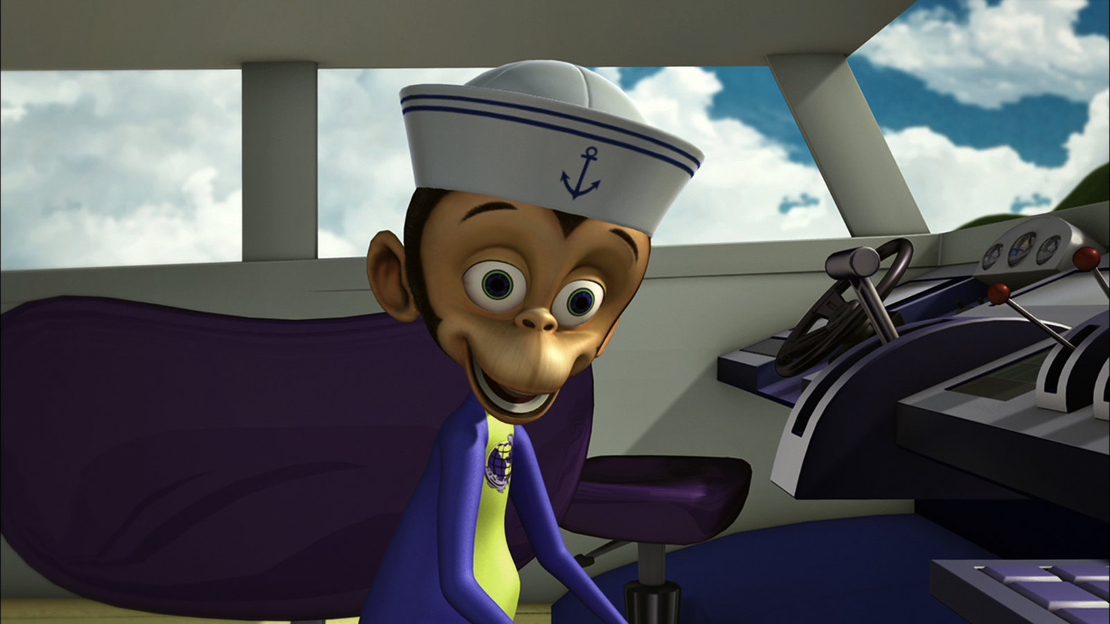 Alles hört auf mein Kommando!Affe Scuba macht gute Miene zum bösen Spiel: Gerade hat er alle Sauerstoffflaschen der Taucherausrüstung geleert.Bild: © KiKA/Mike Young Productions