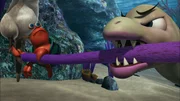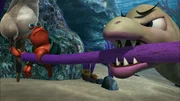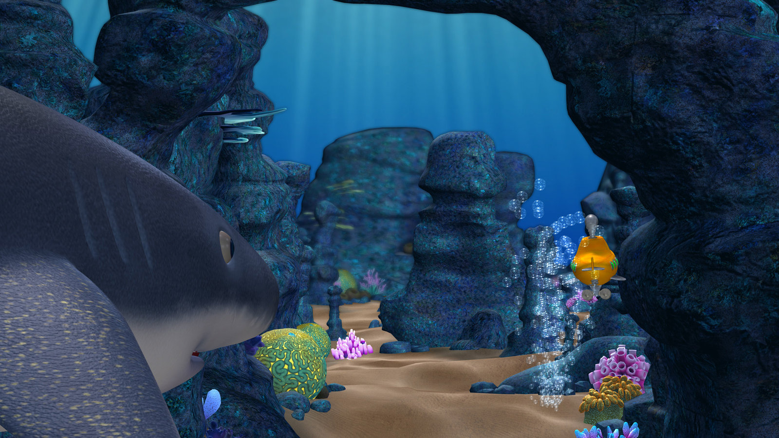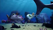 Ein Zuhause für Käpt'n BrandtLeider will ein alter Hai, der im Lava Park lebt, nicht zulassen, dass Timmy und Bess das Schneckenhaus nehmen.Bild: © KiKA/Mike Young Productions