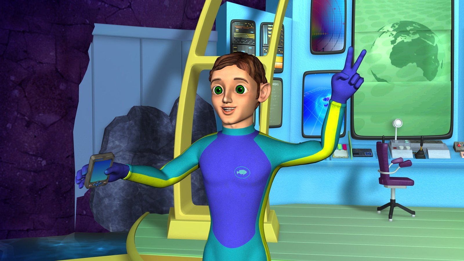 Endlich AbschlussfeierTaucher Tom stattet Timmy, Bess und Skid mit Aufträgen für den heutigen Tag aus.Bild: © KI.KA/Mike Young Productions