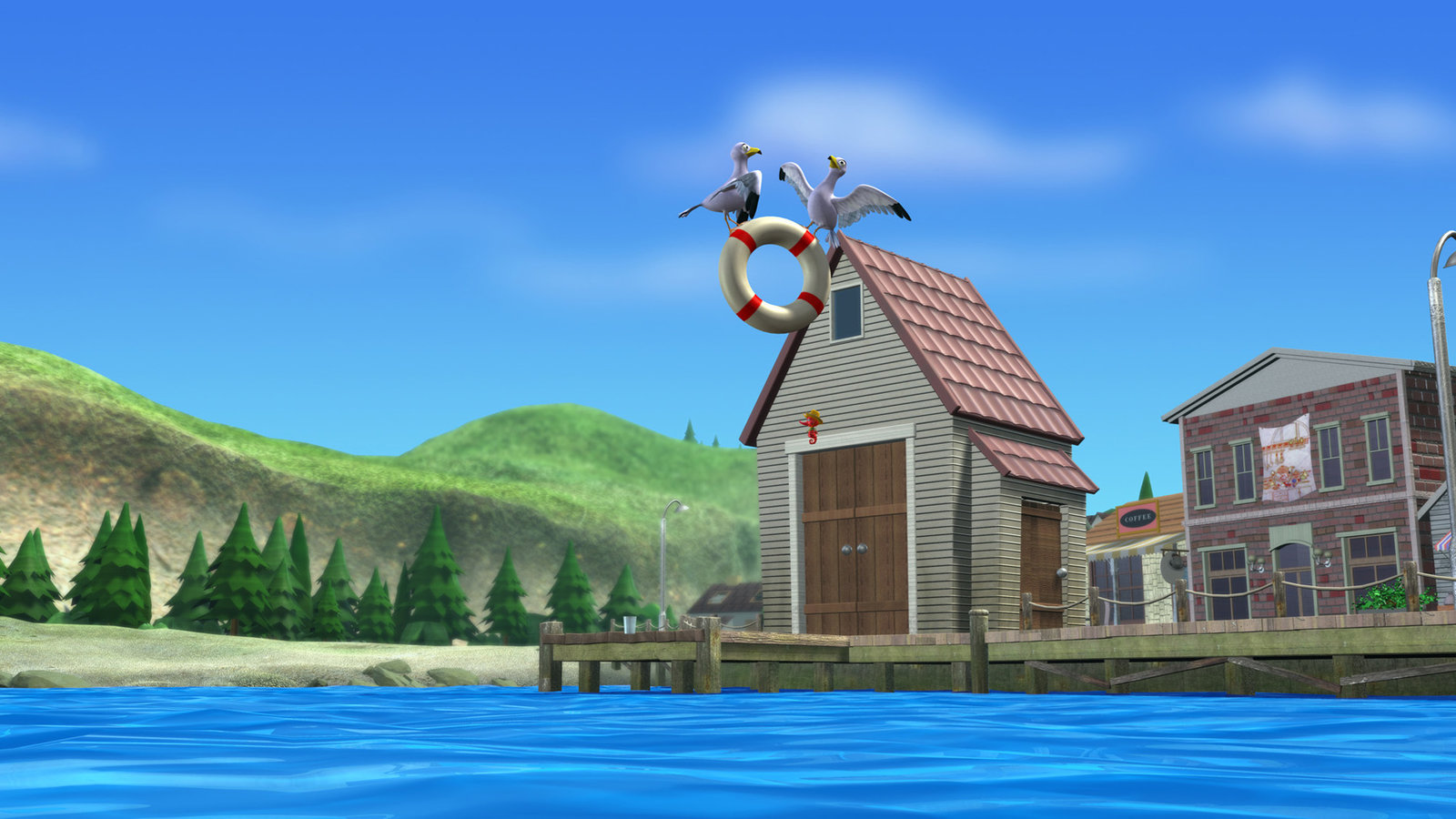 Der Wasserski-MeisterTimmy und Bess müssen die Stahlträger von Shantys Dock überprüfen.ÂBild: © KiKA/Mike Young Productions