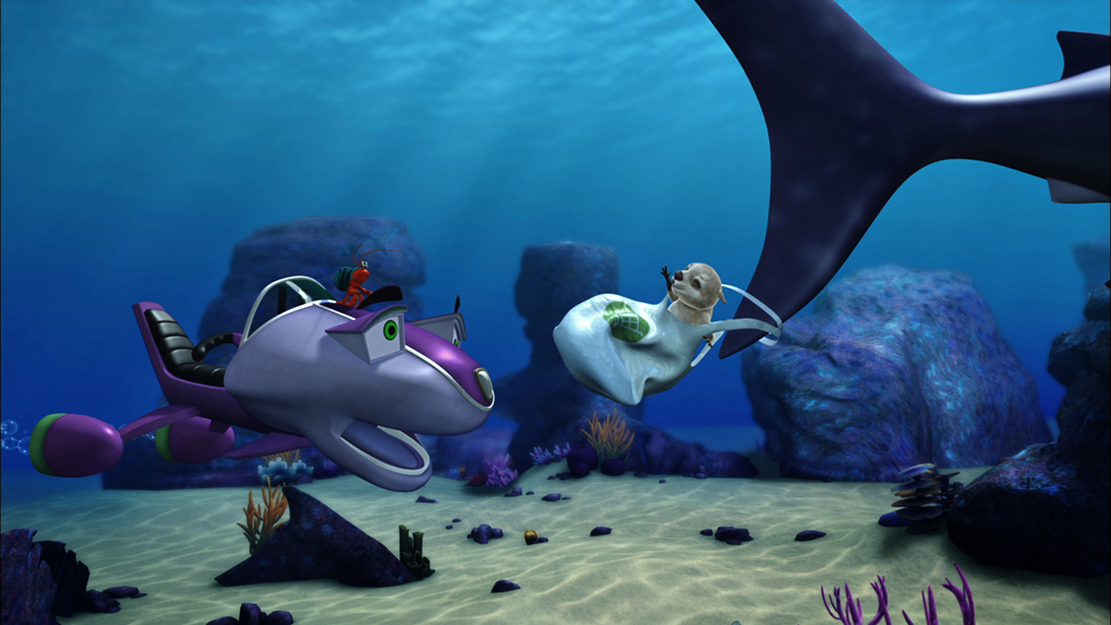 Hab keine Angst, Suzie!Wasserflugzeug Suzie ist durch einen Sturm beschädigt worden und wird von Taucher Tom, Skid, Timmy und Bess gerettet.Bild: © KI.KA/Mike Young Productions