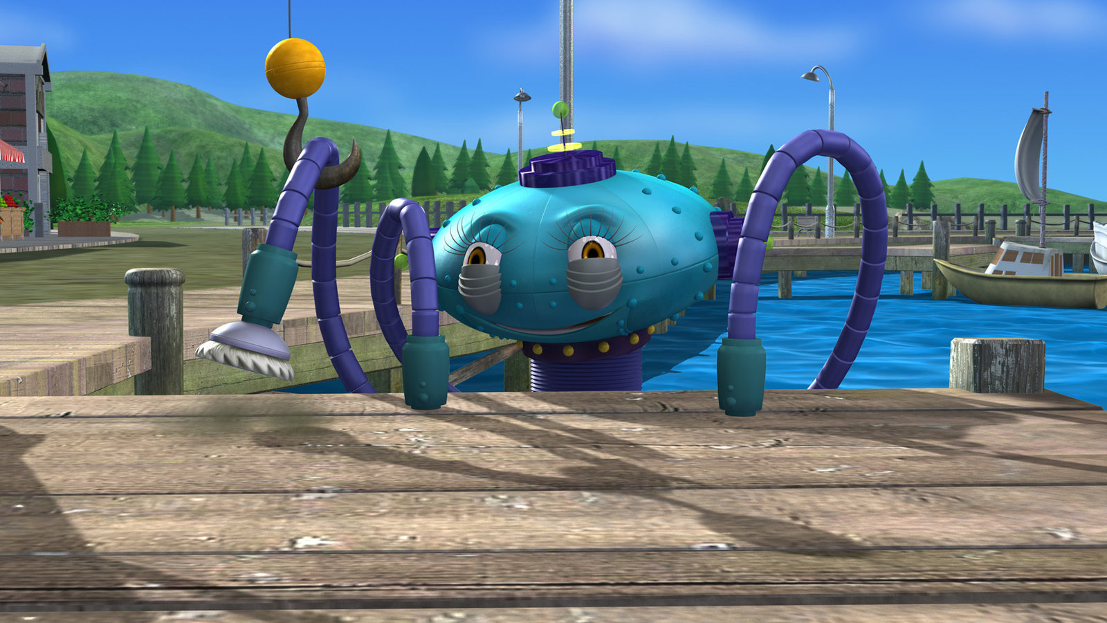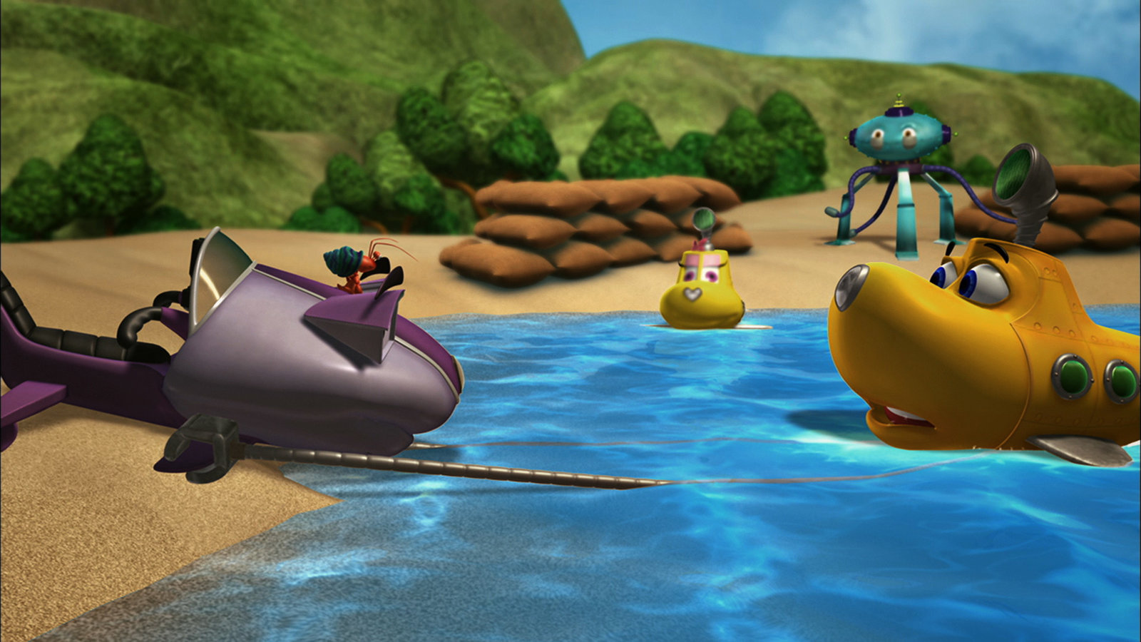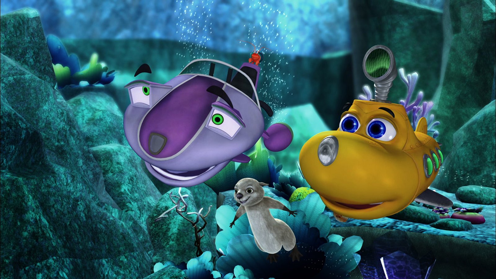 Ein Tag mit U-Boot DBess und Timmy reißen sich darum, babysitten zu dürfen. Taucher Tom übergibt ihnen die Verantwortung für den kleinen Babykraken.Bild: © KiKA/Mike Young Productions