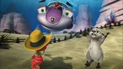 Tintenfische XXLSkid findet die Wal-Herde und lockt sie mit dem Gesang von Käpt'n Brandt in Richtung Küste.Bild: © KiKA/Mike Young Productions