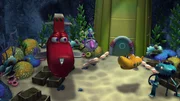 Skid verblüfft alleSchnell befreien Timmy und Bess den alten Hummer, doch liegt in der Falle nur ein alter Hummerpanzer. Da lacht verschmitzt Opa Claudius, weil er die Freunde reingelegt hat.Bild: © KiKA/Mike Young Productions