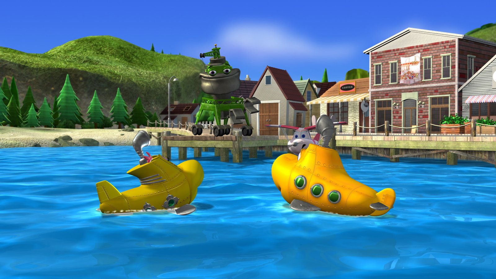 Öl in der DüsterbuchtGemeinsam mit Taucher Tom und seinen Neffen machen Timmy und Bess einen Ausflug.Bild: © KiKA/Mike Young Productions