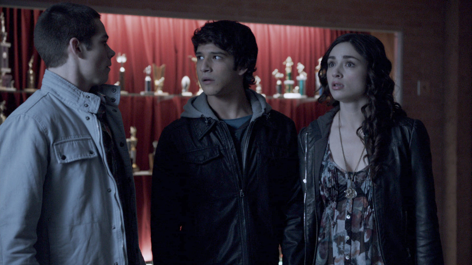 Die Nacht in der HighschoolScott (Tyler Posey, Mitte) versucht Allison (Crystal Reed, re.) klar zu machen das er ihr keine Nachricht geschickt hat das sie in die Schule kommen soll...Bild: © RTL II