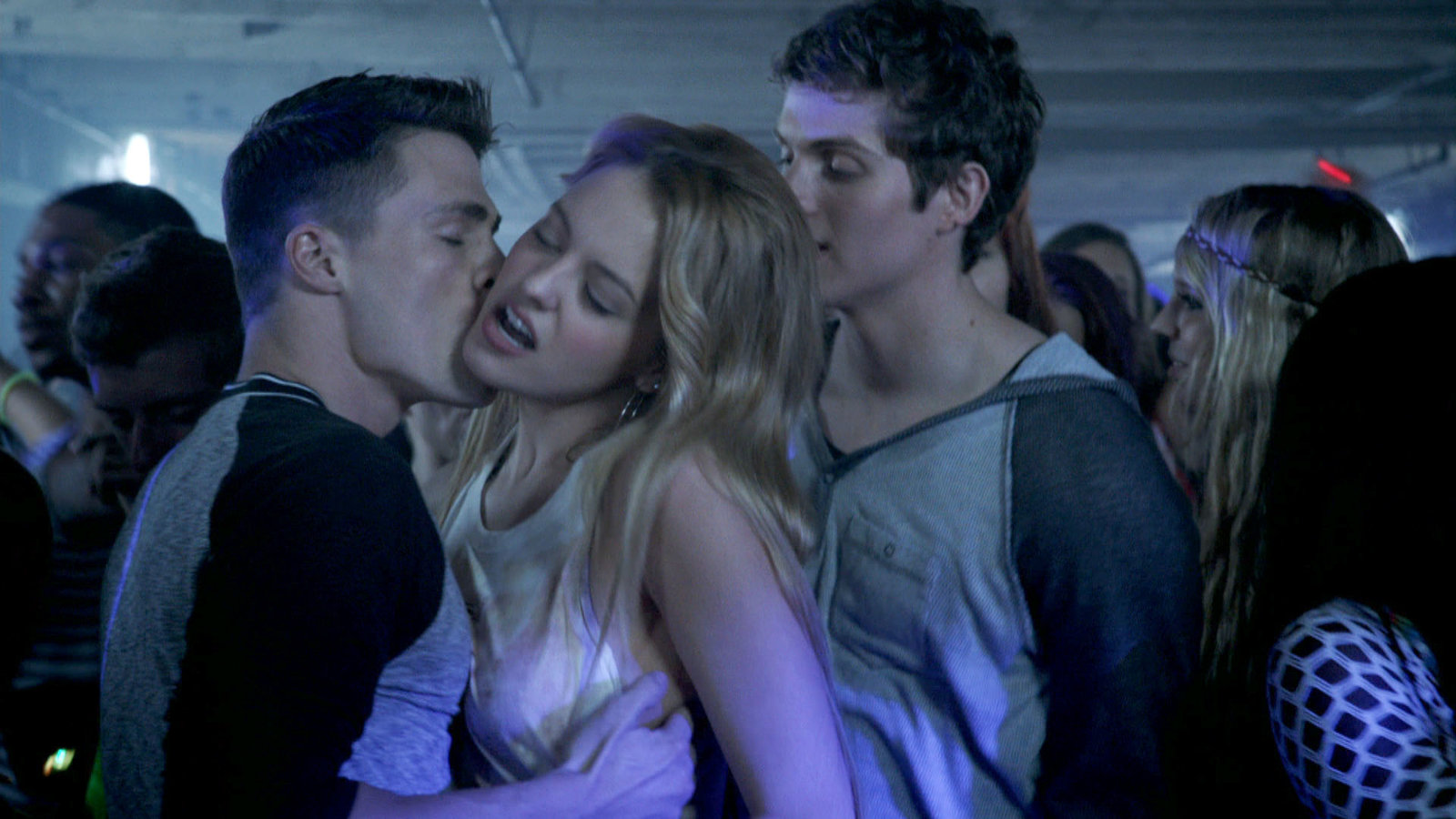 Der RaveErica (Gage Golightly, Mitte) und Isaac (Daniel Sharman, re.) versuchen Jackson (Colton Haynes, li.) abzulenken...Bild: © RTL II