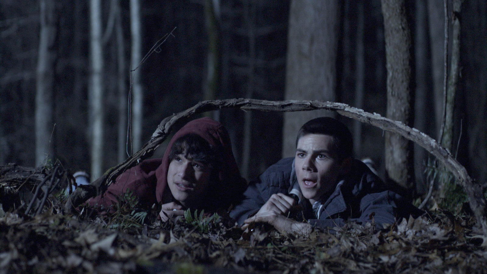 WolfsmondScott (Tyler Pesey, li.) und Stiles (Dylan O`Brien) wollem im Wald nach der Leiche eines toten Mädchens suchen...Bild: © RTL II