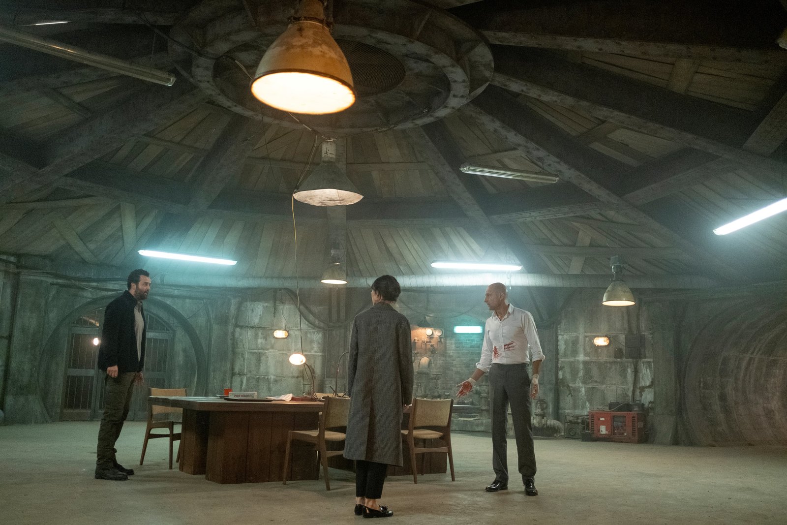 Kapitel 1L-R: Lee Simmons (Daniel Mays), Anna Willems (Carice van Houten) and Dr. Daniel Milton (Mark Strong)Bild: © Sky Atlantic