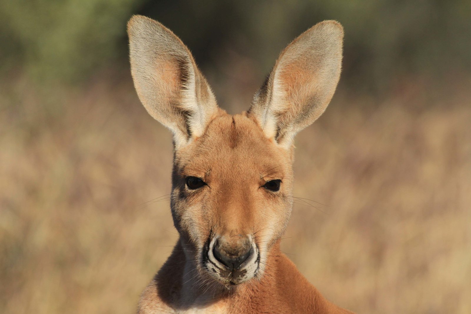 Australien - Land der Roten RiesenMit ihren großen und sehr beweglichen Ohren lauschen Rote Riesenkängurus aufmerksam – kaum ein herannahender Feind kann ihnen entgehen.Bild: © Servus TV