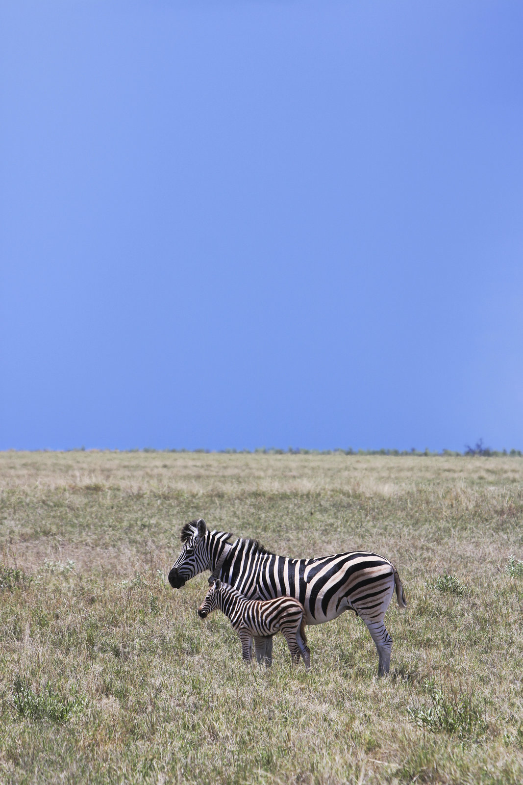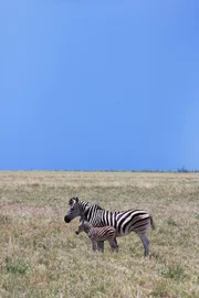 Die großen Wanderungen: Der Zug der ZebrasBild zeigt: 'Socks' ein kollabiertes Zebra; / Gekennzeichneter Charakter mit ihrem neuen Fohlen im Nxai Pan NationalparkBild: © David Johnson