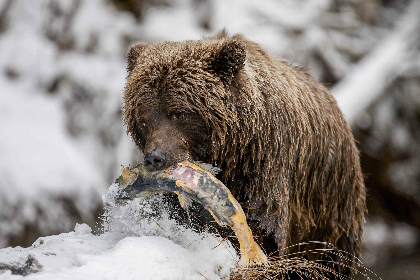 Wildes Kanada (2/4): Der Wilde WestenEin Grizzlybär hat einen Ketalachs erbeutetBild: © Brian Leith Productions / Terra Mater / Kieran O'Donovan
