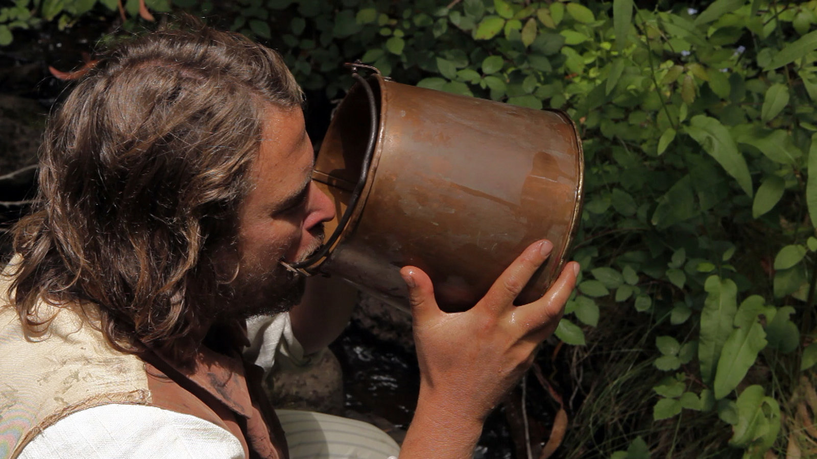 Die Schatzinsel des Robinson CrusoeTerra X - Die Schatzinsel des Robinson Crusoe BILD 5 – Selkirk Wasser Alexander Selkirk holt Wasser. Dank der reichlich vorhandenen Süßwasserquellen, konnte Alexander Selkirk auf der Pazifik-Insel überleben. Der schottische Seemann wurde wegen Meuterei auf ihr ausgesetzt und musste mutterseelenallein 4 Jahre und 4 Monate auf seine Rettung warten. Seine Abenteuer dienten dem Schriftsteller Daniel Defoe später als Vorbild für seinen Roman „Robinson Crusoe“. So trägt die Insel auch seit 1961 den Namen des Romanhelden.Bild: © History