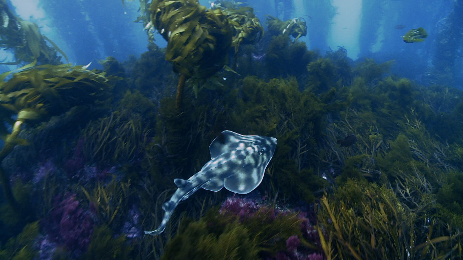 Universum der Ozeane (1)Kelpwälder gelten als das ozeanische Gegenstück zu den Regenwäldern an Land. Sie sind außerordentlich artenreich. Forscher gehen sogar davon aus, dass heute viele Tausend Arten von Kelpbewohnern noch nicht bekannt sind.Bild: © ZDFneo