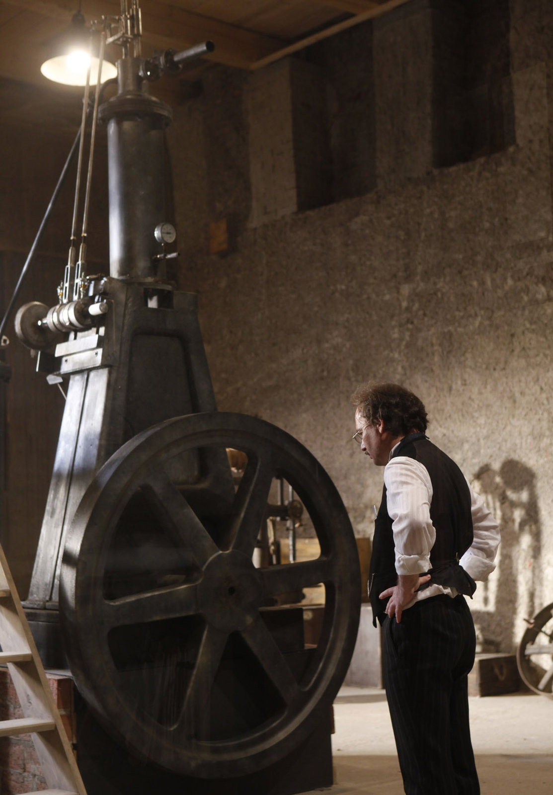 Auf den Spuren genialer Forscher und Erfinder: 7. Das Diesel-RätselRudolf Diesel (Zdenek Stepanek) vor seinem Motor, seiner "schwarzen Geliebten"Bild: © ZDFneo