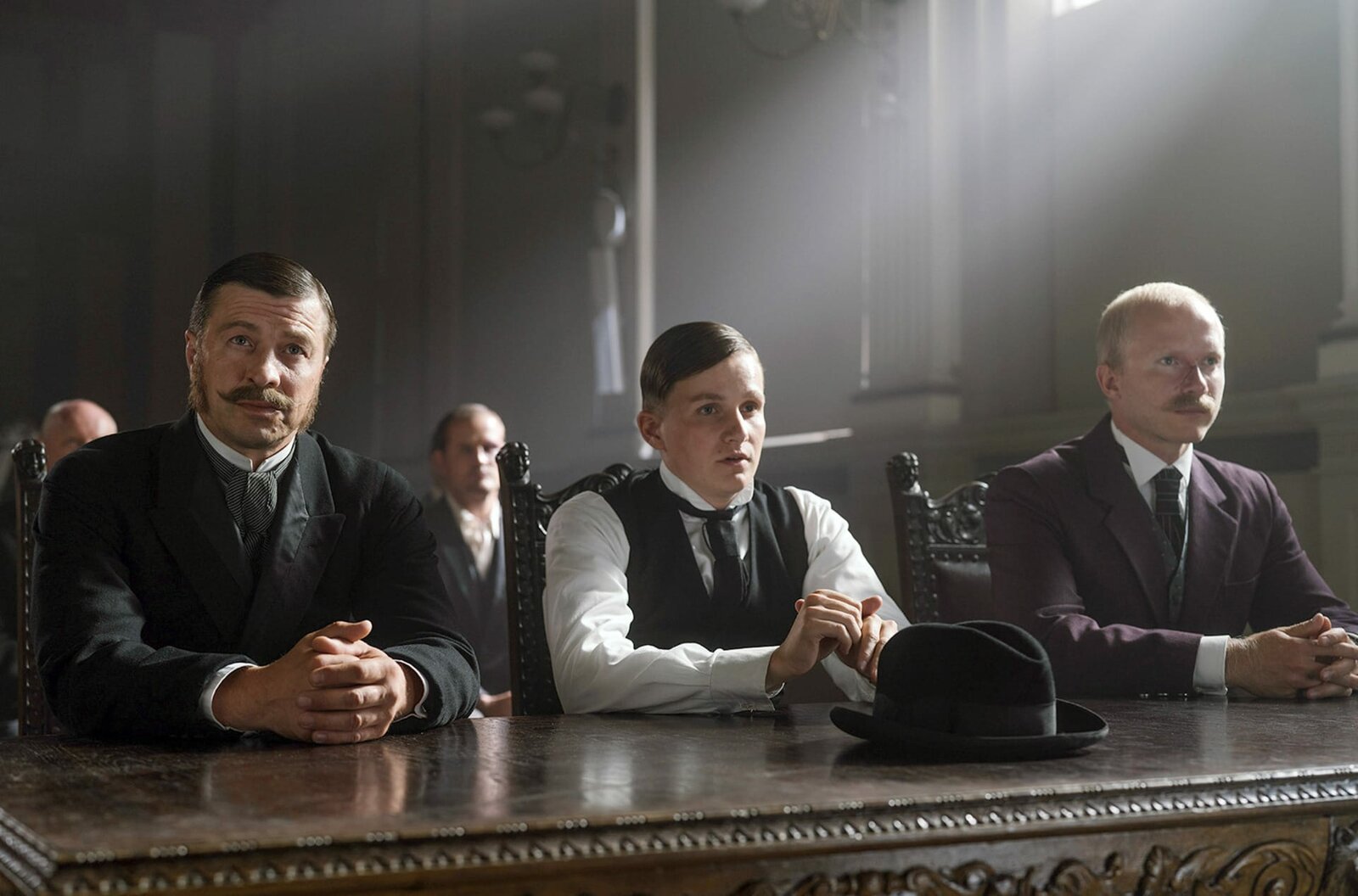 Ein Tag in New York 1882Sein Handwerk lernt Georg (Leon Blaschke, Mi.) von seinem Vorgesetzten, einem erfahrenen New Yorker Anwalt. Er zeigt ihm, wie man vor Gericht auftritt und Prozesse gewinnt.Bild: © ZDF / © Gatis Indrevics/Story House Productions