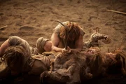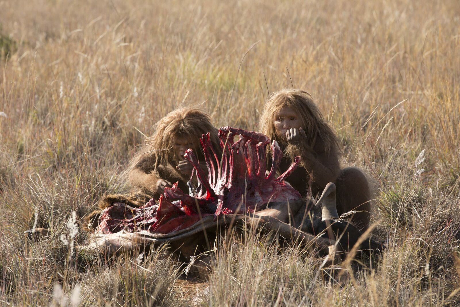 Die ersten Menschen (2): Aus Afrika in die ganze WeltWenn man keine Reißzähne oder scharfe Krallen hat, ist es gar nicht so leicht, rohes Fleisch als Nahrung zu nutzen. Sehr wahrscheinlich begann der Mensch seine Vorliebe für Schnitzel als Aasfresser.Bild: © ZDF und Charlie Sperring.