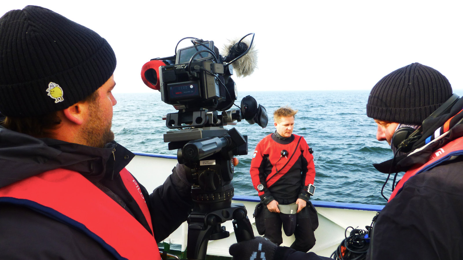 Versunkene SchätzeDas Team um den Archäologen Florian Huber von der Universität Kiel bei Forschungsarbeiten auf der Ostsee.Bild: © ZDF und Nanje de Jong-Teuscher