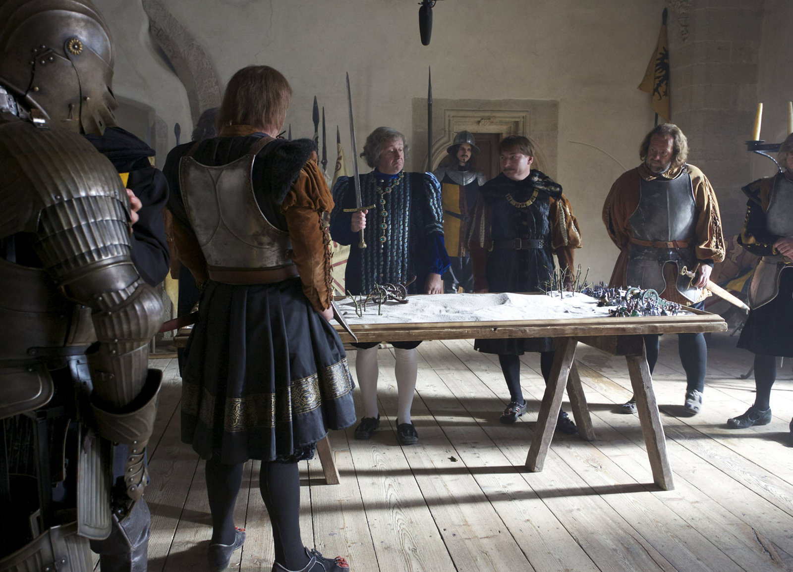 Die Welt der Ritter: 3. Die Letzten ihrer ArtKaiser Maximilian erläutert seinen Getreuen die neue Art der KriegsführungBild: © SRF/ZDF